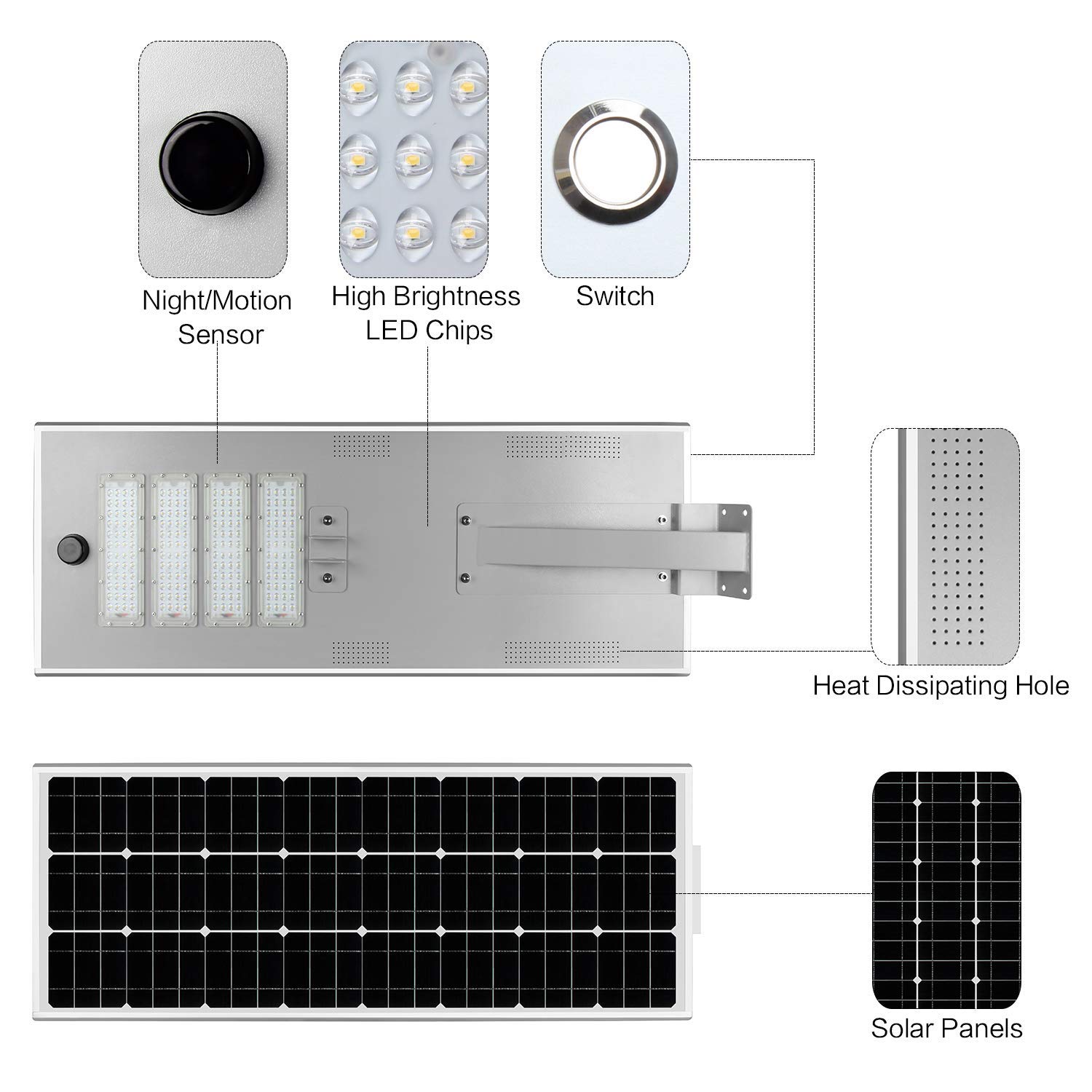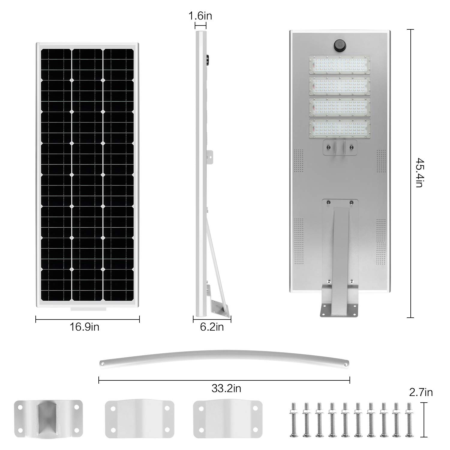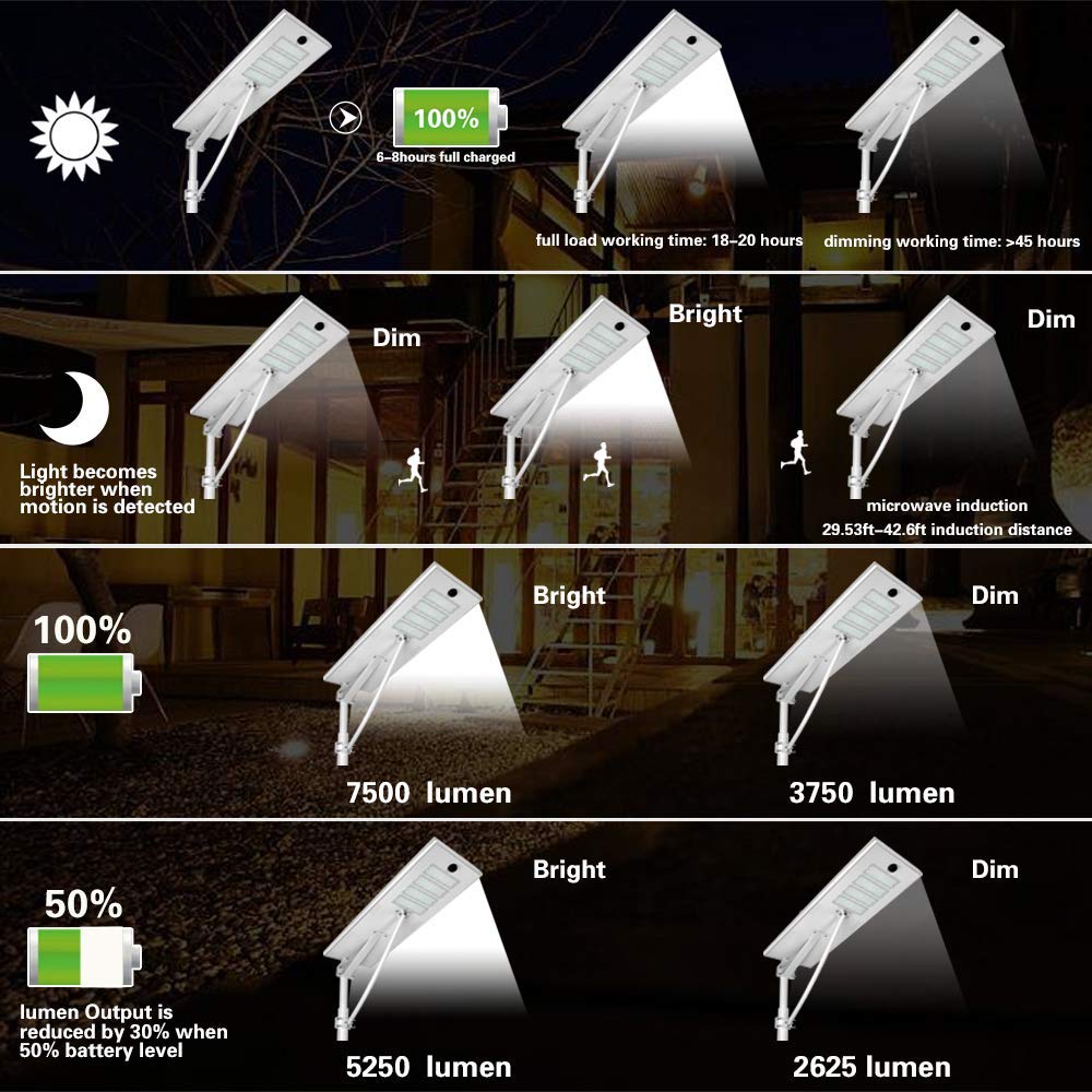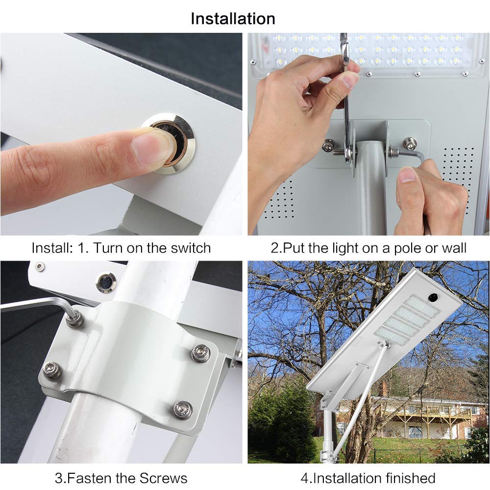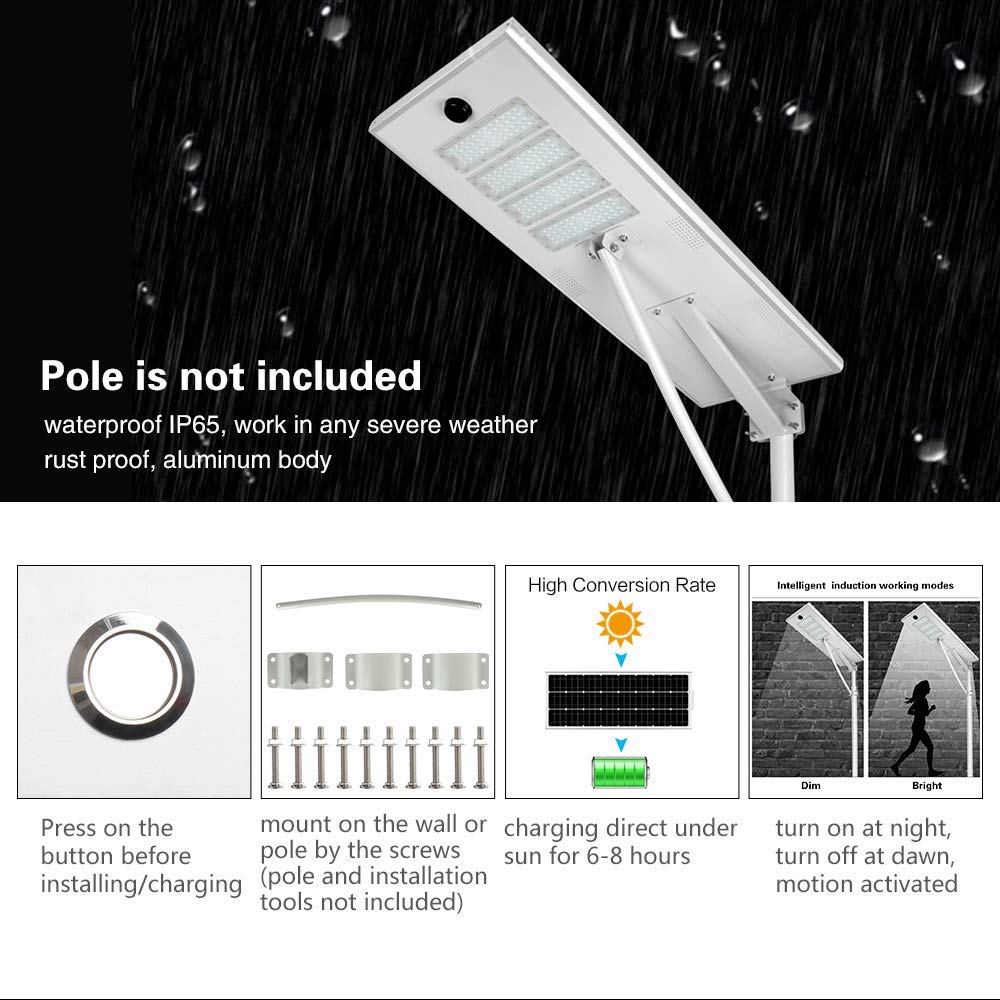 5. Integrated lithium battery and controller, no complex assembly work, less wiring connection mistake, making the solar street lights installation easy and simple.