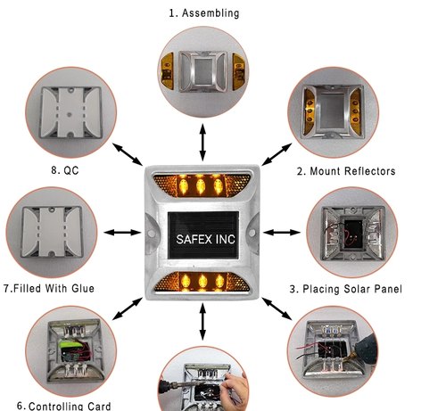 8) Waterproof and unbreakable: road Stud , Solar panel, electronics and optics are fitted inside