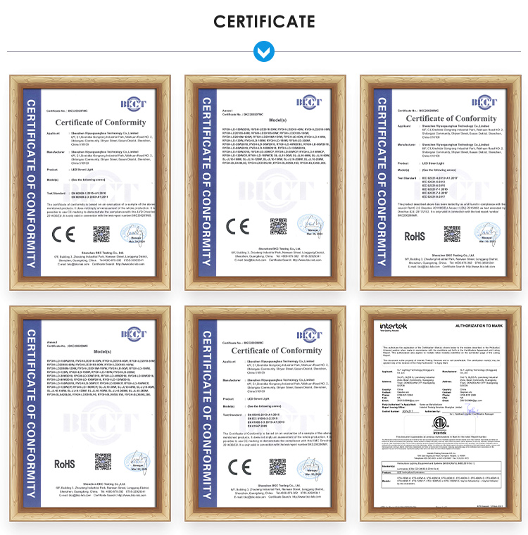 A:We have ISO, ROHS, CE, IP65, IEC, as well as national patent.