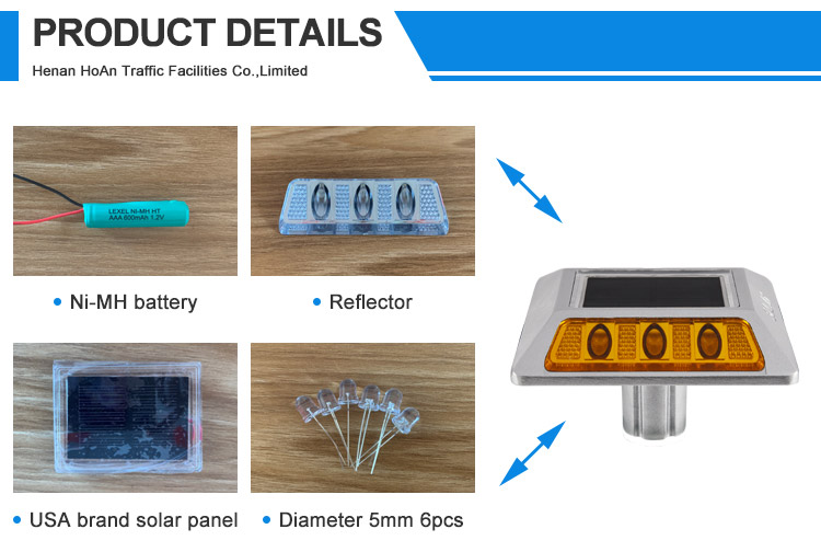 This pavement markers, also called solar road studs, solar cat eyes or solar pavement marker,which the flashing solar cell powered and maintenance-free lighting device used in road construction to delineate and /or illuminate the lanes to road users during the day and night.