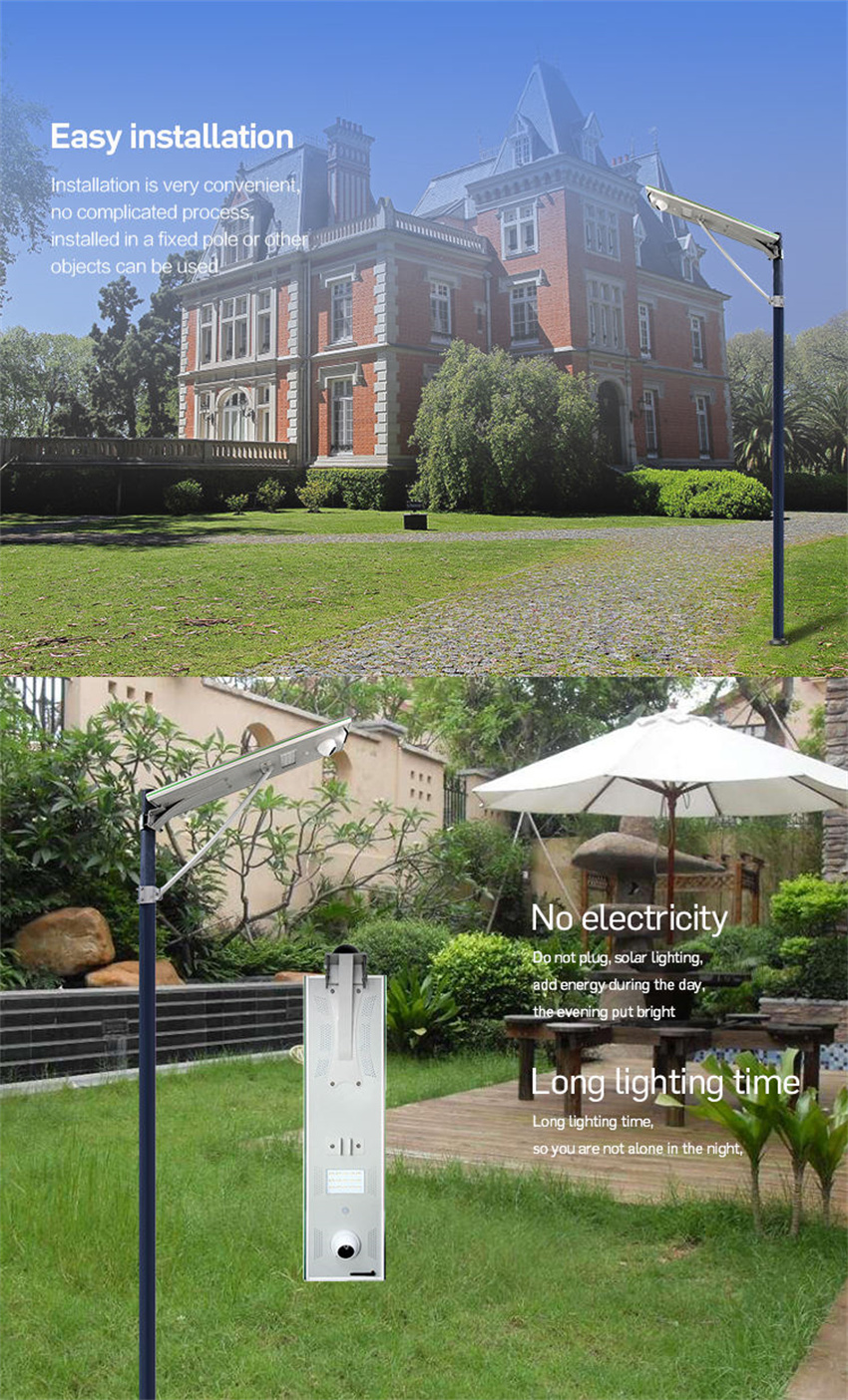 What makes us the professional solar street light manufacturer is the integrated new design, lithium battery with long life, and a built-in infra-red motion sensor. The compact volume and lightweight make it easier to install the lights.
